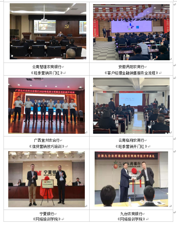 开展50+家银行网点产能提升及服务营销项目:工商银行承德分行、邮储银行重庆分行、东莞银行、阳江邮政、东莞邮政、安徽涡阳农商行、云南楚雄农商行